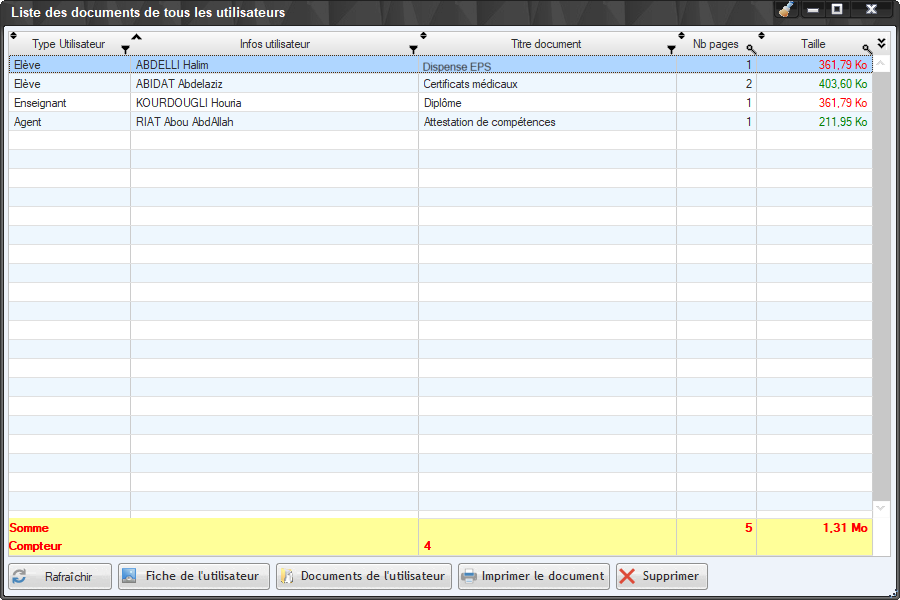 2 - Contrôle de la taille des documents associés aux utilisateurs